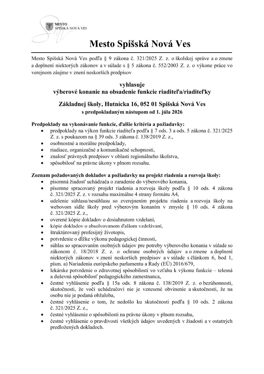 Oznam pre verejnosť